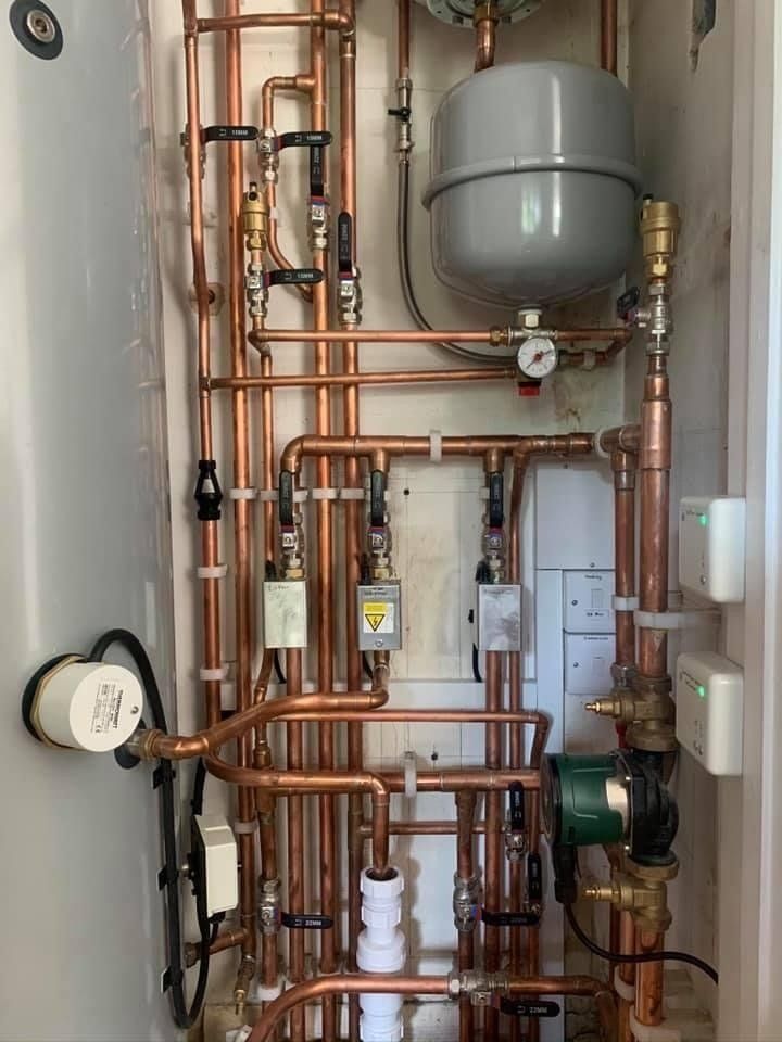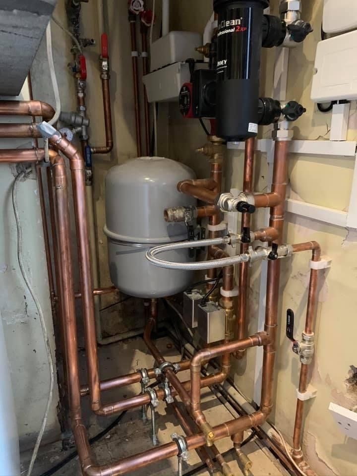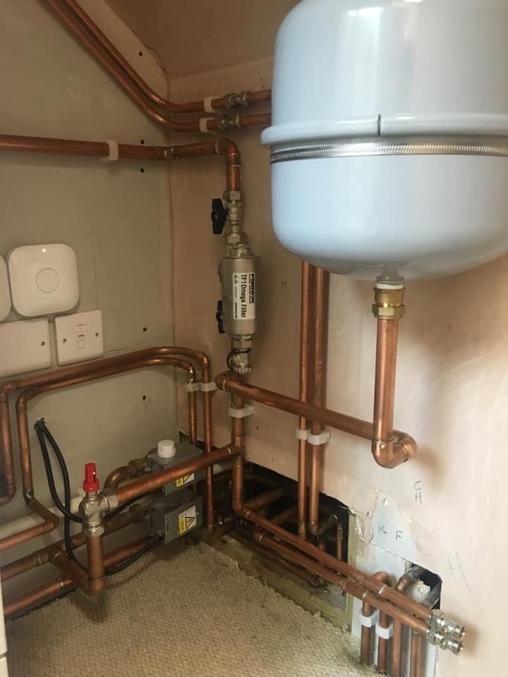 When the water in the system is heated by the boiler it expands. A gravity fed system utilises a vital safety component called the expansion pipe. This pipe allows the water in the system to rise up and drop as it expands and contracts during heating and cooling periods. The expansion pipe or ‘vent pipe’ allows water to be discharged back into the feed and expansion tank in the event of an overheating issue within the system.